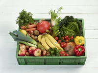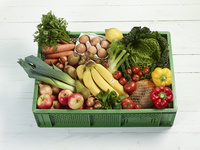 Mit der Probekiste „Obst und Gemüse“ erhalten Sie frischen Salat, verschiedene Sorten Gemüse zum Kochen oder Rohverzehr und eine Auswahl an knackigem Obst im Warenwert von 25 Euro. Sie mögen eine bestimmte Gemüsesorte nicht? Dann teilen Sie uns das im Kommentarfeld mit und wir schließen diese Sorte von der Lieferung aus.