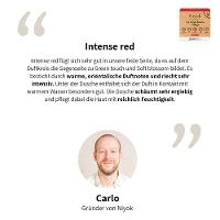 100% Plastikfrei und Naturkosmetik-zertifiziert: Die feste 2 in 1 Dusche von Niyok reinigt die Haut dank milden Natur-Tensiden besonders sanft und spendet dank der speziellen Formulierung reichlich Feuchtigkeit. Der pH-Wert von 5,5 ist hautneutral und schu-tzt somit die natu-rliche Barriere der Haut. Intense red besticht durch warme orientalische Duftnoten und entfaltet auf der Haut seine volle Intensität. Das Stu-ck schäumt ergiebig, zerbricht aber nach der Anwendung nicht, da es nicht gepresst wurde. Niyok steht fu-r vegane Naturkosmetik im minimalistischen Stil. Made in Germany.