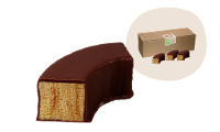 fein geschichteter Teig aus bestem Dinkelmehl, mit zartschmelzender Zartbitterschokolade überzogen