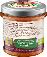 Tomaten* (45%), Sonnenblumenkerne*, grüne Oliven* (7%), Sonnenblumenöl*, Karotten* (6%), schwarze Oliven* (5%), Tomatenmark* (4%), Agavendicksaft*, natives Olivenöl* extra, Kartoffelstärke*, Rote Bete Saftkonzentrat*,Zitronensaftkonzentrat*, Zwiebelpulver*, Meersalz,Verdickungsmittel: Johannisbrotkernmehl*, Chilipulver*.