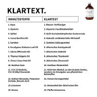 Wasser: Verflu-ssiger, Glycerin: Feuchthaltemittel, Xylit: kariesbekämpfender Zuckerersatz, Kokosöl: antibakterieller Wirkstoff, Sorbitol: Su-ßungsmittel, ätherisches Eukalyptusöl, ätherisches Salbeiöl, ätherisches Thymianöl, ätherisches Zitronenöl, Xanthan: Bindemittel, Nicht der Alkohol, an den du