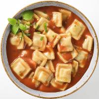 Ravioli gekocht [Nudelteig (HARTWEIZENGRIESS*, Trinkwasser), fleischhaltige Füllung (15 % Schweinefleisch*, HAFERFLOCKEN*, Sonnenblumenöl*, Meersalz)]