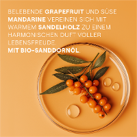 Sinne. In Kombination mit der besänftigenden Mandarinenote und der anregenden Grapefruitkomponente entsteht ein natürlicher Gute-Laune-Duft, der schon morgens für ausgeglichene Stimmung