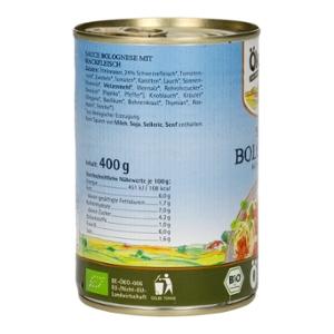 Trinkwasser, 24% Schweinefleisch*, Tomatenmark*, Zwiebeln*, Tomaten*, Karotten*, Lauch*, Sonnenblumenöl*, WEIZENMEHL*, Meersalz*, Rohrohrzucker*,
