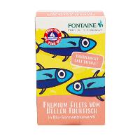 Fontaine Heller Thunfisch wird nach den Richtlinien der Nachhaltigkeit einzeln mit der Angelrute aus dem Wasser gezogen. Nach dem Handangelfang folgen die verantwortungsvolle Verarbeitung und die Verfeinerung mit besten Bio-Zutaten. Diese Vollkonserve enthält neben dem Thunfisch ausschließlich Meersalz und kalt gepresstes Bio-Sonnenblumenöl aus deutscher Ölmühle.