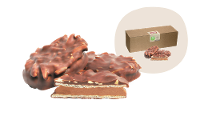Dinkel-Waffeln mit Mandelsplittern bestreut, mit zart-cremiger Nougatfüllung und mit feiner Vollmilchschokolade überzogen