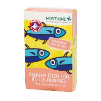 Fontaine Heller Thunfisch wird nach den Richtlinien der Nachhaltigkeit einzeln mit der Angelrute aus dem Wasser gezogen. Nach dem Handangelfang folgen die verantwortungsvolle Verarbeitung und die Verfeinerung mit besten Bio-Zutaten. Diese Vollkonserve enthält neben dem Thunfisch ausschließlich Meersalz und kalt gepresstes Bio-Sonnenblumenöl aus deutscher Ölmühle.